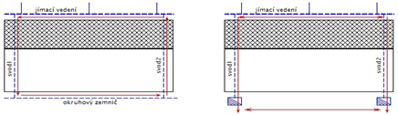 Na levém obrázku dole se měří přechodový odpor a na pravém zemní odpor, rozdíl je snad patrný. Měření transformátory nelze použít, pokud je okruhový zemnič nebo pokud je jeden svod.